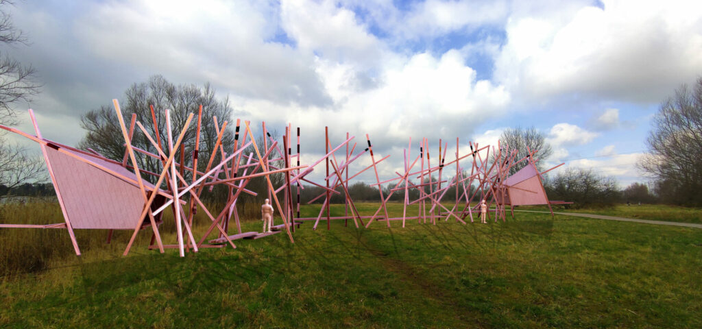Le duo des Archisculpteurs ( Vincent Bredif et Julien fajardo) au lac de Téteghem.