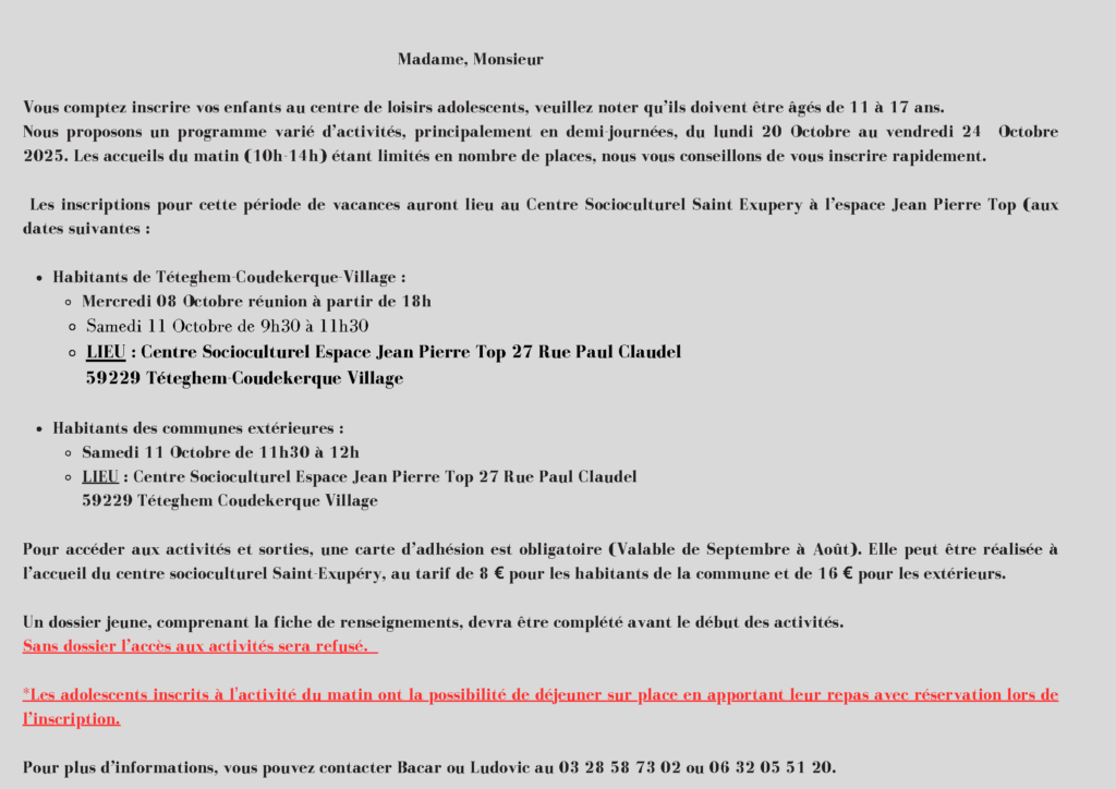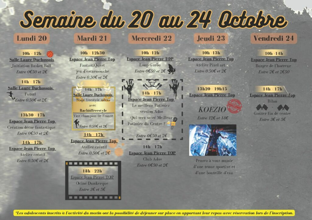 You are currently viewing Planning Adolescents – Vacances Octobre 2025